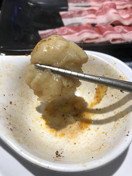 因為飢腸轆轆的我以快速刷幾片肉把雜七雜八的料丟一丟才變成這個顏色的!!